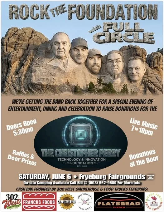 On Saturday evening, the Fryeburg Fairgrounds will come alive with Rock the Foundation, a concert and fundraiser featuring the band Full Circle, who are reuniting specifically for this special event. Gates open at 5:30 PM, with Full Circle taking the stage from 7:00 to 10:00 PM. Entrance is by donation to the foundation.